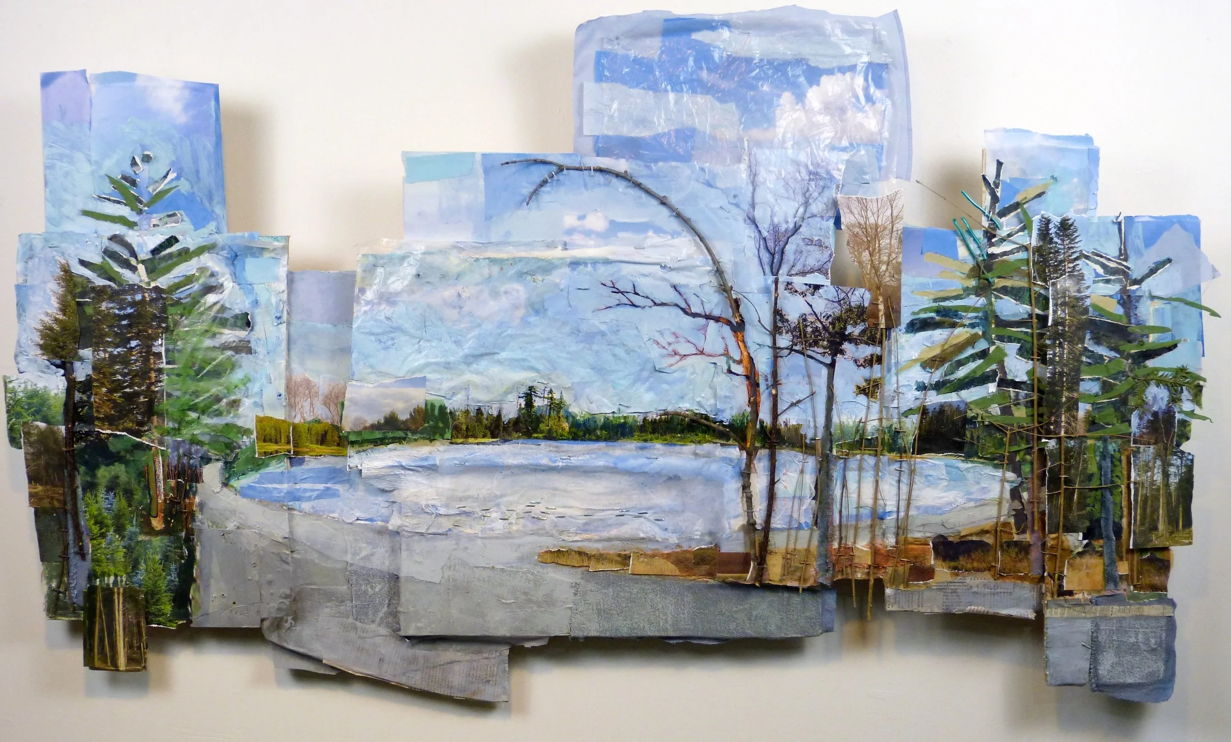 "MacDowell Dam Pond, Peterborough, NH", Mixed Media, 49" x 33", 2017