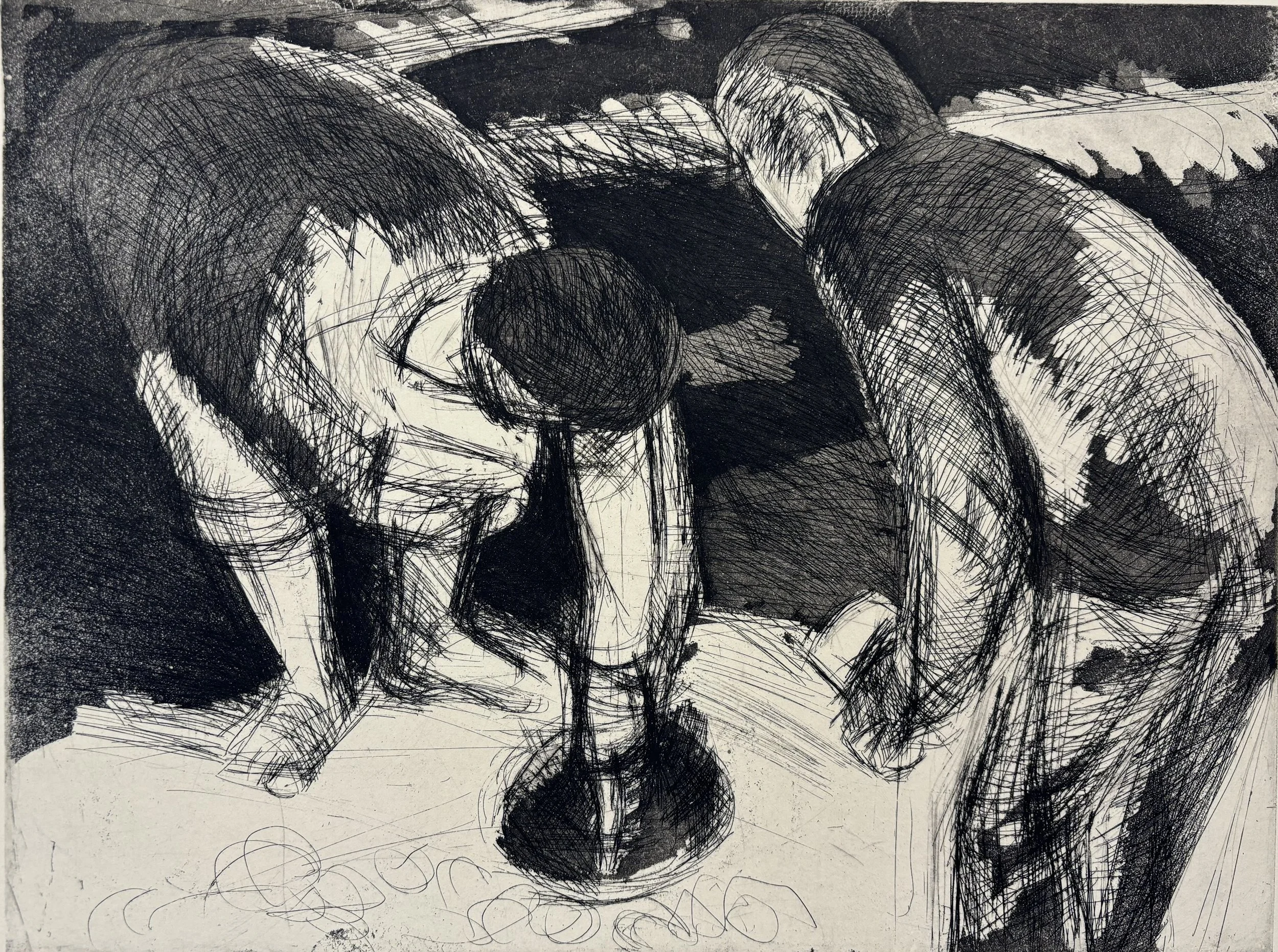 Rachel Siporin, "Night Clamming", Intaglio on Rives BFK paper, 12" x 16", 2024